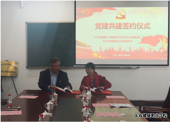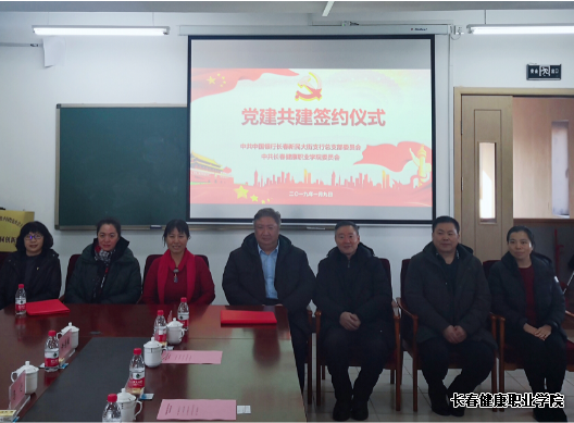 2019年1月9日上午,中共長春健康職業(yè)學院委員會與中共中國銀行新民大街支行黨總支部委員會黨建共建簽約儀式在我院六樓會議室舉行。學院黨委領導班子以及共建單位主要領導出席儀式。