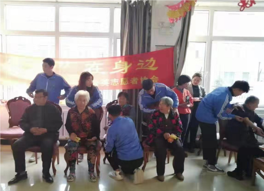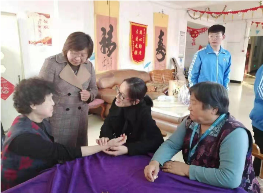 在安老院,黨員教師們細(xì)心詢問了老人們的飲食起居、身體狀況,并借助我校的專業(yè)優(yōu)勢(shì),為老人們測(cè)體溫,量血壓,為他們按摩并向老人們宣講康復(fù)保健知識(shí)。在與老人們的現(xiàn)場(chǎng)互動(dòng)環(huán)節(jié),志愿者學(xué)生們獻(xiàn)上精心準(zhǔn)備的文娛節(jié)目,讓下午的安老院處處充滿著歡聲笑語(yǔ),洋溢著溫馨感動(dòng)。